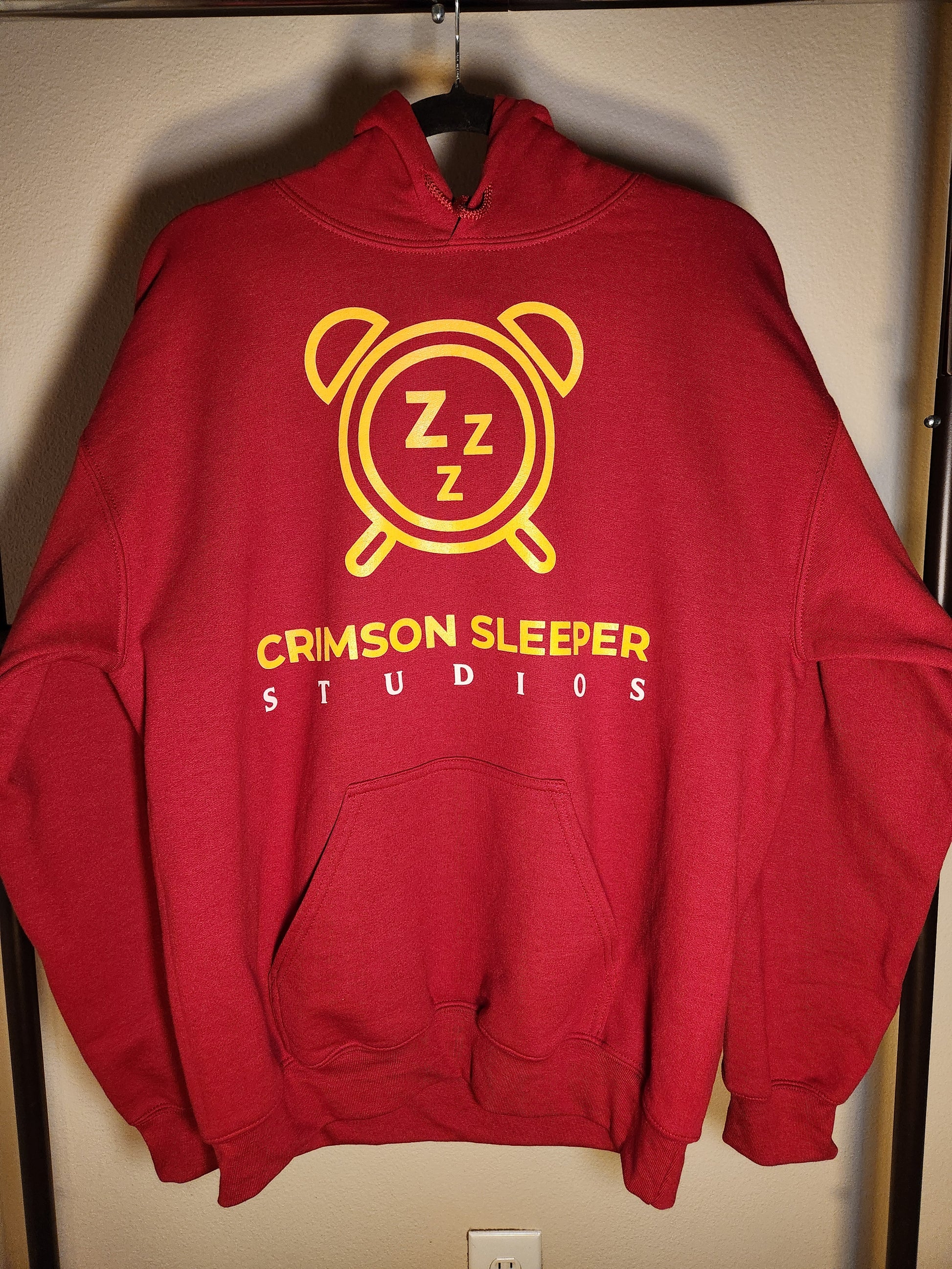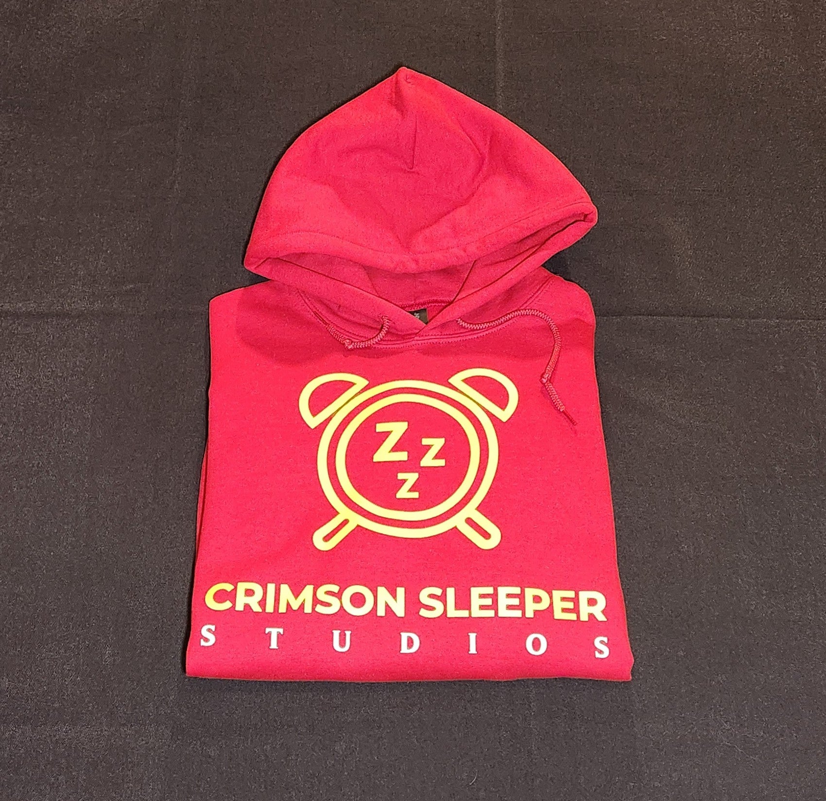 The Look: Features our logo in eye-catching yellow & white on a red hoodie.