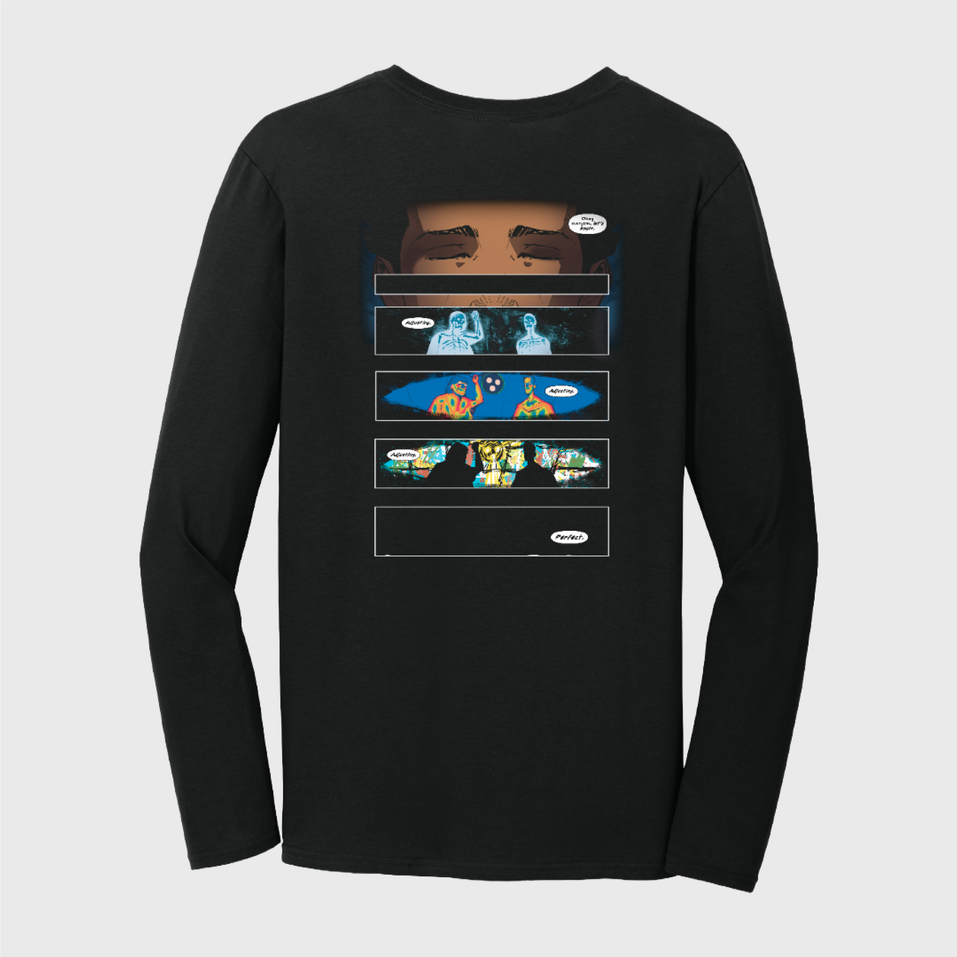 This isn't just a shirt; it's a wearable piece of our comic. Featuring chilling, full artwork from PSION #1 splashed across the back, this long-sleeved tee lets you add PSION's Southern Gothic atmosphere to your wardrobe.